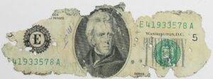 Complete bills and money fragments recovered from Tena Bar were examined. Contrary to popular reports [6], there were only a few fragments in plastic boxes and no indication that there was a quantity of fragments found or any information on exactly where they were recovered. FBI agents carefully combed the site on Tena Bar from Tuesday, February 12, 1980 to Saturday, February 16, 1980. The original three bundles of money were found about 20 yards from the water’s edge under a thin layer of sand, approximately 3 inches down. Additional scraps of money were found on Wednesday, February 13, 1980.