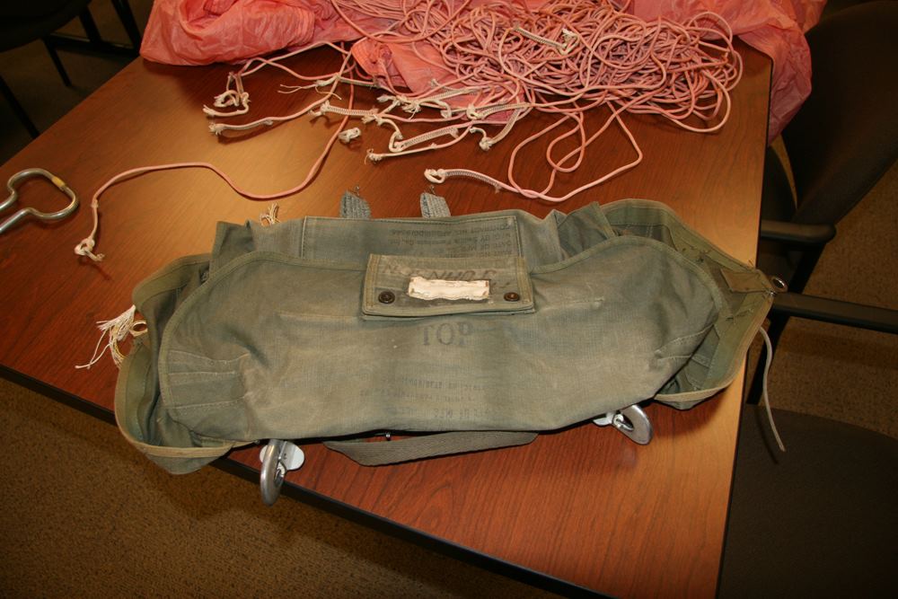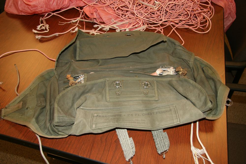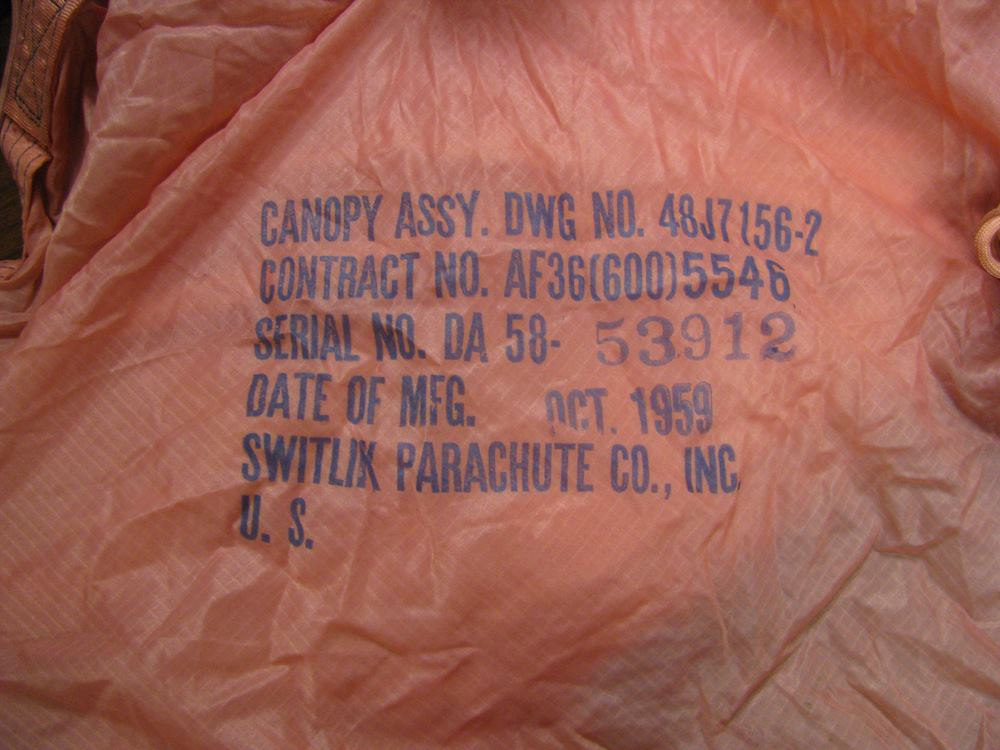 According to the Senior Master Sergeant and Tech Sergeant of Nellis Air Force Base who conducted the inspection, the pink parachute that was opened and abandoned on the airplane was a 24-foot Ripstock type, with serial # DA 58-53912. Manufactured in October 1959 by the Switlik Parachute Co. – a company established in 1920 and still in business today – the chest-chute was one of two chest-chutes delivered to the hijacker. Both were owned by Seattle Sky Sports of Issaquah, Washington, located 17 miles east of Seattle. The inspection card record contained in the canvas pack at the time of the FBI examination, stated that the chute had been inspected and repacked on September 16, 1971 by Rigger Earl J. Cossey.