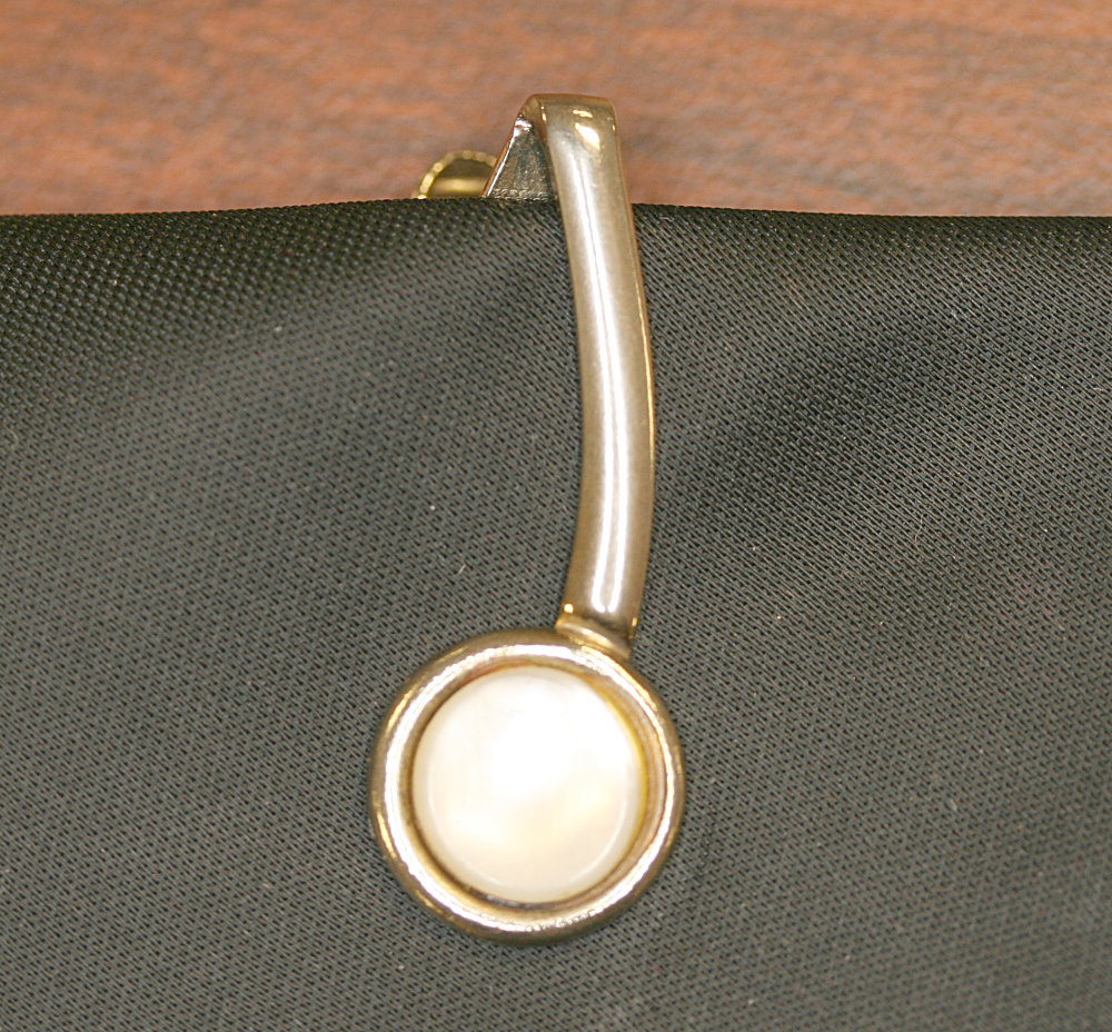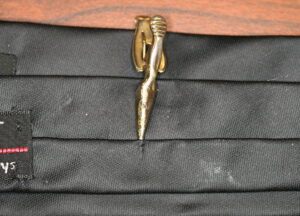 The tie clip, pictured in Figure 1, was attached to the tie found on the cushion of seat 18E, which was where Cooper sat [1]. The clip is unremarkable and slightly damaged with a bent alligator clip on the rear making it hard to remove and replace.